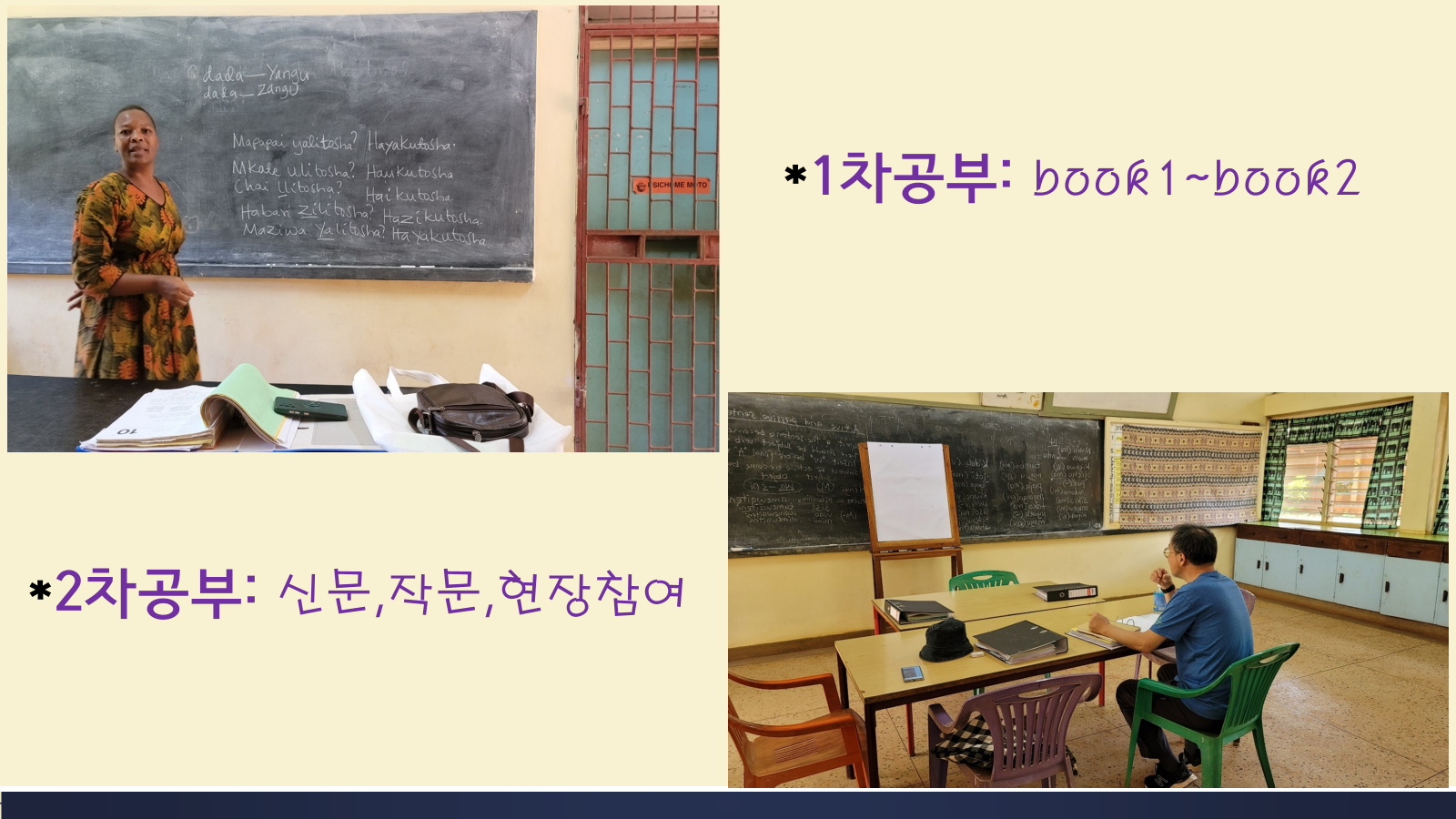 1) 모로고로에 있는 언어학교(기존공부하던 곳)에서 계속해서 언어공부진행