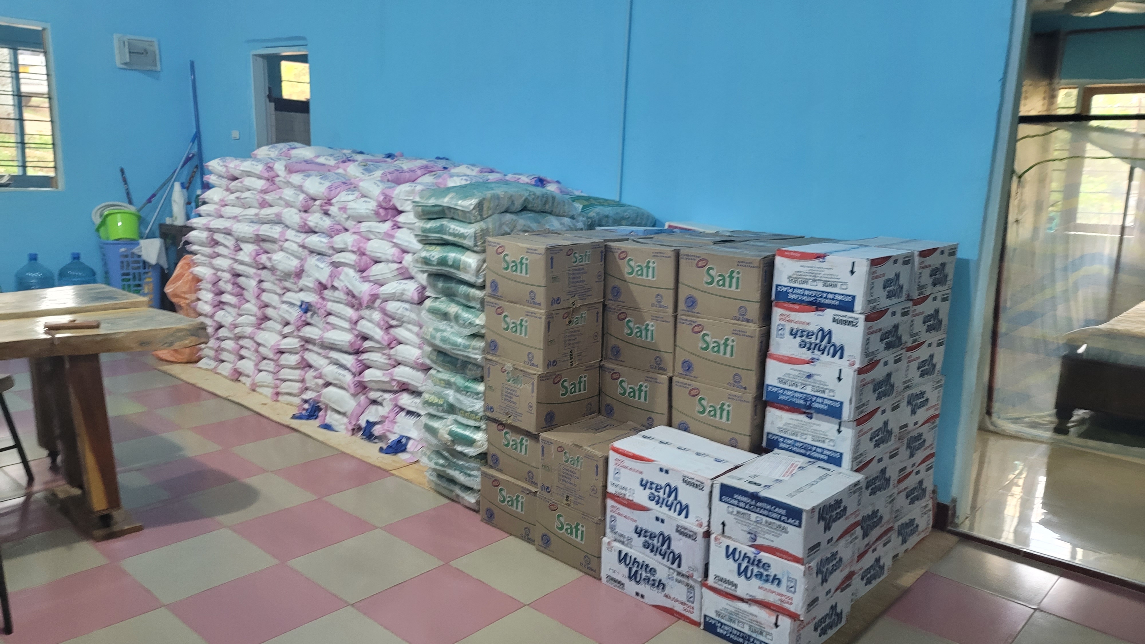 (선물꾸러미:옥수수가루5kg, 설탕1kg, 기름1리터, 비누5장, 아이들간식등:약1만5천원 상당)